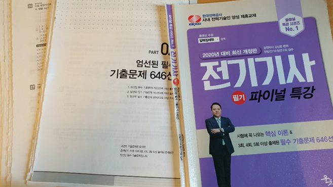 · 공부법은 전기산업기사 때와 마찬가지로 기출 빈도가 높은 646문제 정도만 4∼5번 정도 거의 이해하면서 반복해서 풀었다. 과년도 10년치는 고사하고 작년 2019년 과년도도 안 봤다. 646문제면 과년도 2년 분량이긴 하다. 진짜 아래 책 1권만, 646문제만 존나 풀었다.