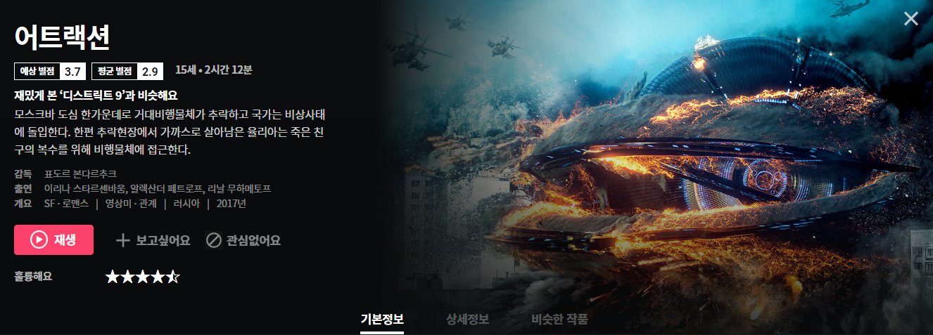 · 이 영화는 위 가정과는 정반대다. 우주선을 타고 외계인이 먼저 찾아왔다. 우주선의 존재만 봐도 현인류보다 과학적으로 앞서 있는 게 명백해. 그들을 어떤 식으로 맞이할지 인류는 준비가 돼 있나? 아무런 준비도 없이 맞닥뜨린 불청객을 접하는 수많은 선택기 중에 하나를 이 영화를 통해서 볼 수 있는데 그 내용이 너무 어처구니없을 정도로 현실적이고 나 역시도 분명 저 테크트리 탈 거라고 공감을 하기 때문에 ★8을 매겼다. 외계인 접대 시뮬레이션을 100번 같은 조건으로 돌려봐도 영화의 범주를 벗어나지 못할 것 걸. 영화 어떻게 끝날 거 같은가. 당신의 외계인 접대법은??